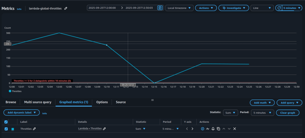 In this article I’ll walk through a real debugging scenario with AWS Lambda. Using CloudWatch metrics we will analyze unexpected throttling behavior step by step. The journey will show not only how to interpret key Lambda metrics like Invocations, ConcurrentExecutions and GlobalThrottles but also how to connect the dots to uncover the true root cause. Finally, I’ll share the lessons learned and practical tips to avoid similar pitfalls in production.
